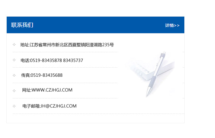 傳真:0519-83435688    郵編:213135    網址:WWW.czjhgj_com.gytok.com    電子郵箱:JH@czjhgj_com.gytok.com
